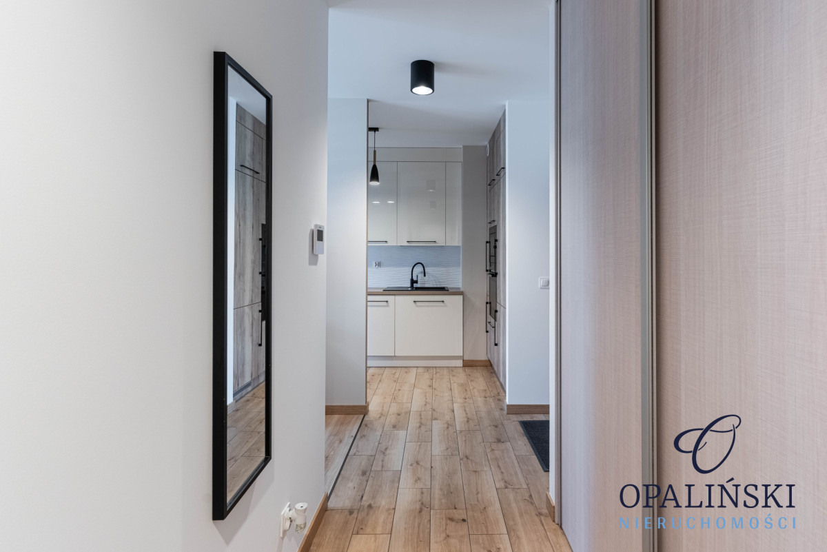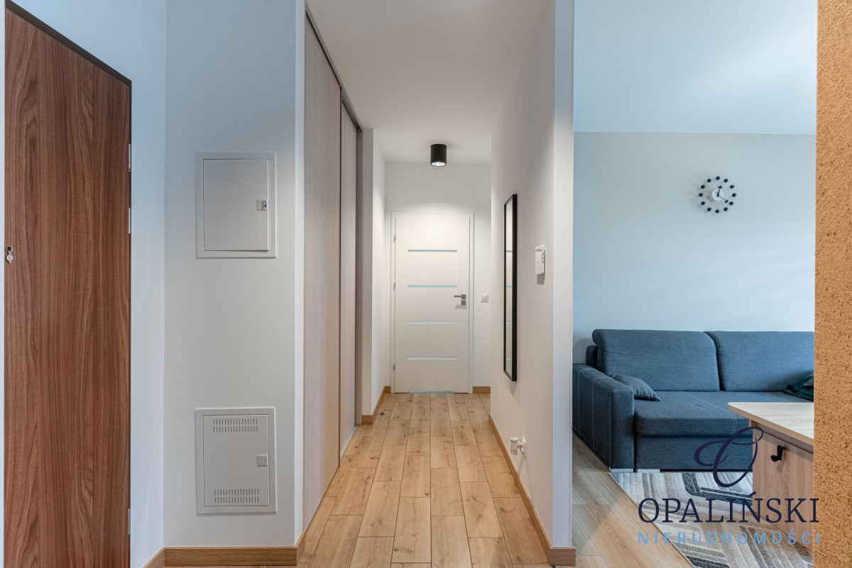 Mieszkanie składa się salonu z aneksem kuchennym, sypialni, łazienki oraz przedpokoju. Układ mieszkania zapewnia maksymalne wykorzystanie przestrzeni, co sprawia, że jest idealne zarówno dla par jak i dla singli.